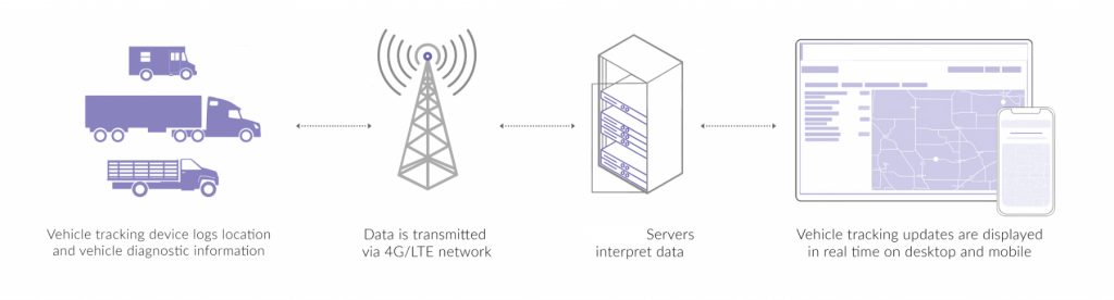 Our GPS Tracker device is installed into your vehicle to determine its position in real-time via GPS satellites. The data is transmitted to our servers, analyzed, and displayed on your fleet manager portal.